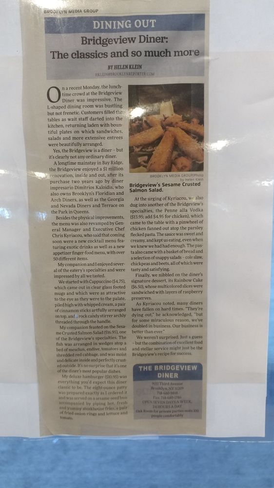 Bridgeview Diner in Brooklyn, NY, offers a traditional diner experience with American breakfast and brunch options. Known for its casual atmosphere and friendly service, this diner provides a variety of vegan and vegetarian choices. The menu includes classic diner fare like waffles and hearty breakfast dishes. Customers praise the parking lot, ample seating, and courteous staff. Despite some mixed reviews on pricing and service speed, many patrons appreciate the consistent quality of the food. With options for delivery, takeout, and catering, Bridgeview Diner caters to a range of dining needs. Whether you're craving a late-night meal or a leisurely brunch, this diner presents a reliable choice for a satisfying dining experience.